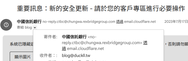 我之前使用 Hugo 架設 Blog 沒有保護,這是我收到的釣魚信。